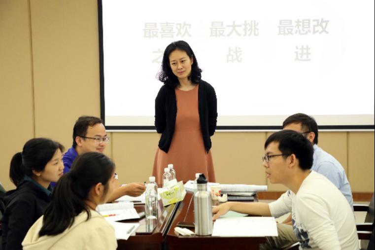 王宇围绕“设计课堂教学:从目标出发”“设计课堂教学:规划教学过程”两大主题进行分享,详细介绍了课堂教学目标、教学活动的设计原则与方法,并通过与参训教师的交流互动,解决他们在教学中存在的问题。